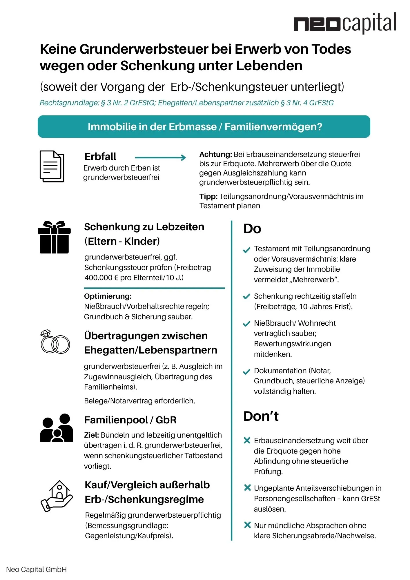 Grunderwerbsteuer bei Erbfolge umgehen: Vermögen steuerneutral übertragen, Risiken vermeiden